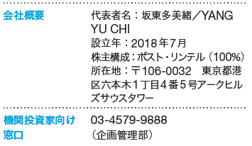 ポスト・リンテルグループの不動産アセット・マネジメント会社。グループは「アジアNo.1の不動産ソリューションカンパニー」をビジョンに掲げ、国籍や人種を超えた価値創造を使命とする。Post Lintel Investment Managementは、法令順守とリスク管理を徹底し、投資家に安定的な資産運用機会を提供。さらに、不動産の公益性を踏まえ、持続可能な都市づくりにも貢献する。投資家の期待を超える運用を目指し、挑戦を続けていく。