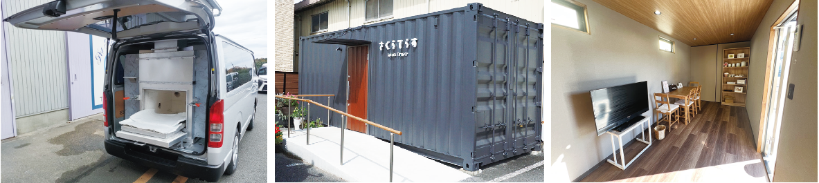 (左)火葬炉を搭載した移動火葬車。大型犬の火葬にも対応できる火葬炉を搭載