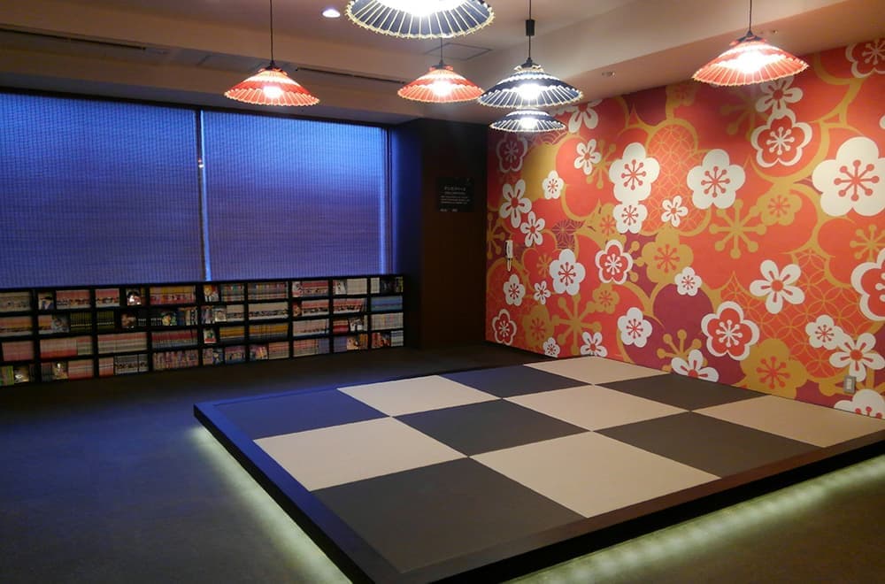 エントランスで迎えてくれるのは「桜書店」。なんとブックショップ&ラウンジだ。食、旅、美や洋書など幅広いジャンルの本が並ぶ。筆者は本誌4月号「非日常への原点回帰!」のインタビュー記事で、「差別化としての知的欲求へのアプローチ」として、本などの知的欲求を充足させるアイテム等の提案をしたが、まるで具現化されたような感慨深さを感じた。書店の奥には寝転べる畳スペースとコミックコーナー。子供がはしゃげそうなエリアだ。その他、カラオケやゲームコーナー等のアミューズメントスポットも併設され驚愕だ。
