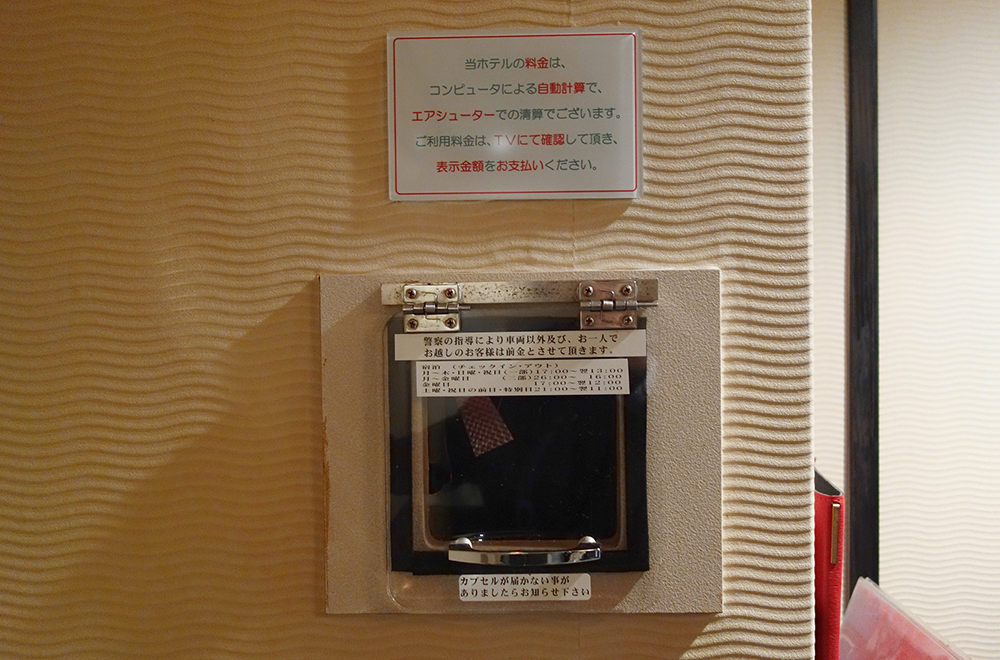 ホテルSKYLOVEで40年近く活躍しているエアーシューター。未だ残っている理由は自動精算機に関連した法令という現実的な理由でもあるが、結果としてメディアで注目されるなど「ラブホテル特有の伝統的設備」が時代を経て“ある種の最先端”として注目されるシーンが増えている。“ブームは繰り返す”とまではいかないが、結果として残った伝統的設備は訪日外国人旅行者などのゲスト多様化という渦中にあって、充分勝負できるアイテムだ。