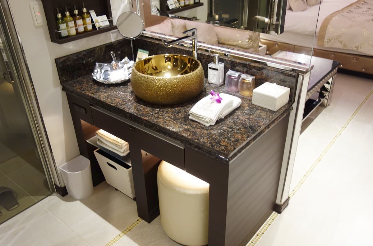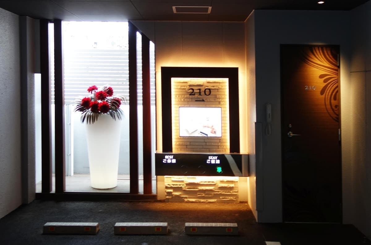 出向いてみると、ワンガレージタイプのホテルで、雑誌に掲載されていた衝撃的な写真の客室は最上級の1室。下階にプールとジャグジー、岩盤浴、上階にリビング・ベッドルームという構成で、ワンガレージの特色を活かした構造といえる。その他も客室も内装、調度品、備品なども含め概して質感が高い。良い意味での均一感がゲストに刺さるようで、リニューアル間もない施設であるが、既に人気沸騰ホテルになっている。