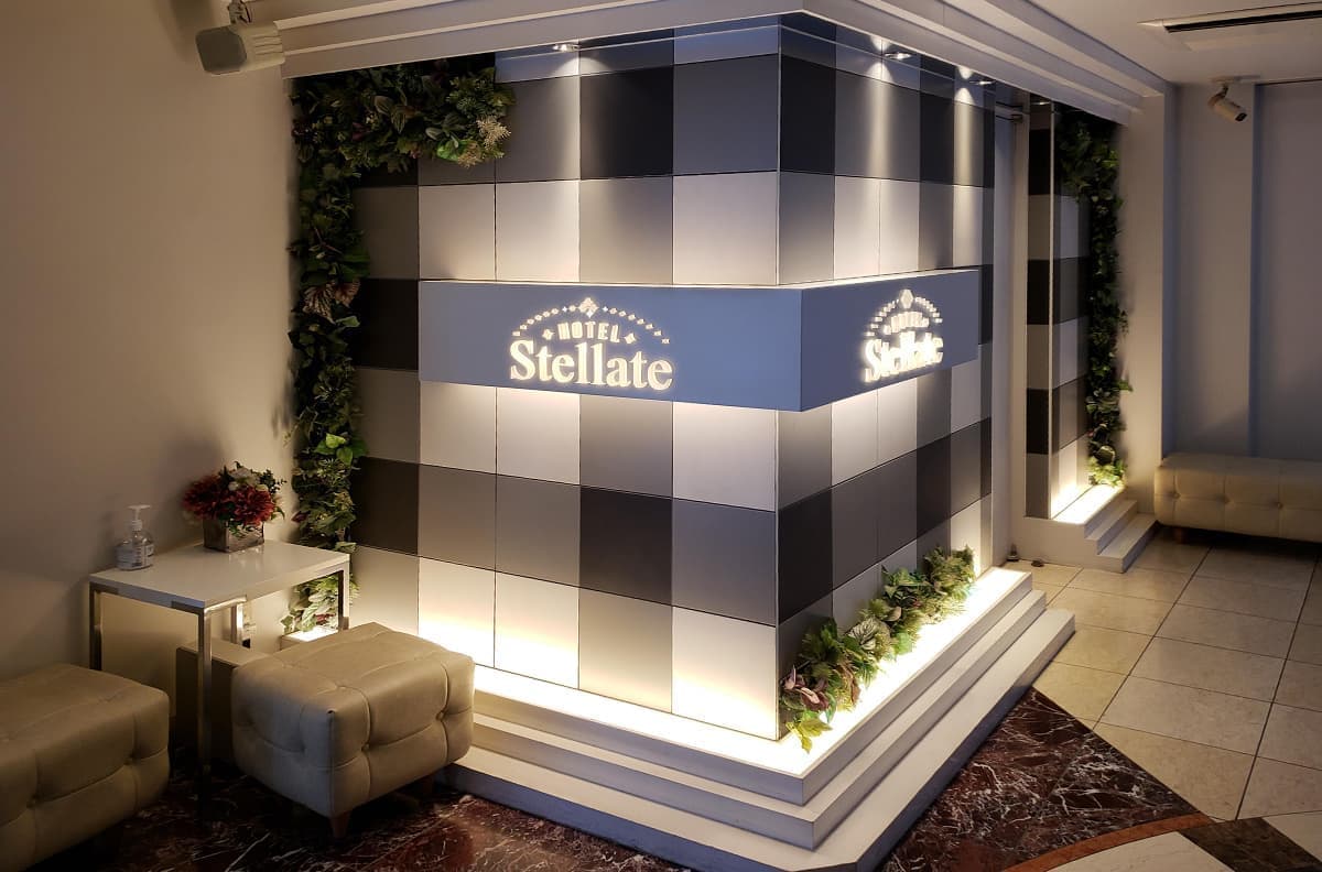 新宿・歌舞伎町の区役所通りから1本東側のストリートは、スケール感も活かした荘厳なファザードの人気ホテルが並ぶ通りであり、ある種歌舞伎町レジャーホテル街のメインストリートとも表せる。ゆえに「HOTEL STELLATE」のモノトーンを基調とした一角は存在感を放つが、レジャーホテルは直情的なアプローチもひとつの“技”というなかで、本来の目的までどのようなストーリーを描けるかという想像力は、先取的な取組みを試みるホテルにとって大きなテーマであることも示唆する。