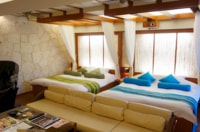 さまざまなタイプの客室を備えるが、特にオープンエアスペースのある客室は陽光差し込む中に、琉球民謡が流れ、気分はもはや沖縄のリゾートホテルだ。スイートルームにはクィーンサイズベッドを2台設置。4名での利用も可能。レジャーホテル=1台の大型ベッドという固定概念を打ち破る。ジャグジーに岩盤浴、ミニキッチンなど高級コンドミニアムを彷彿とさせる。