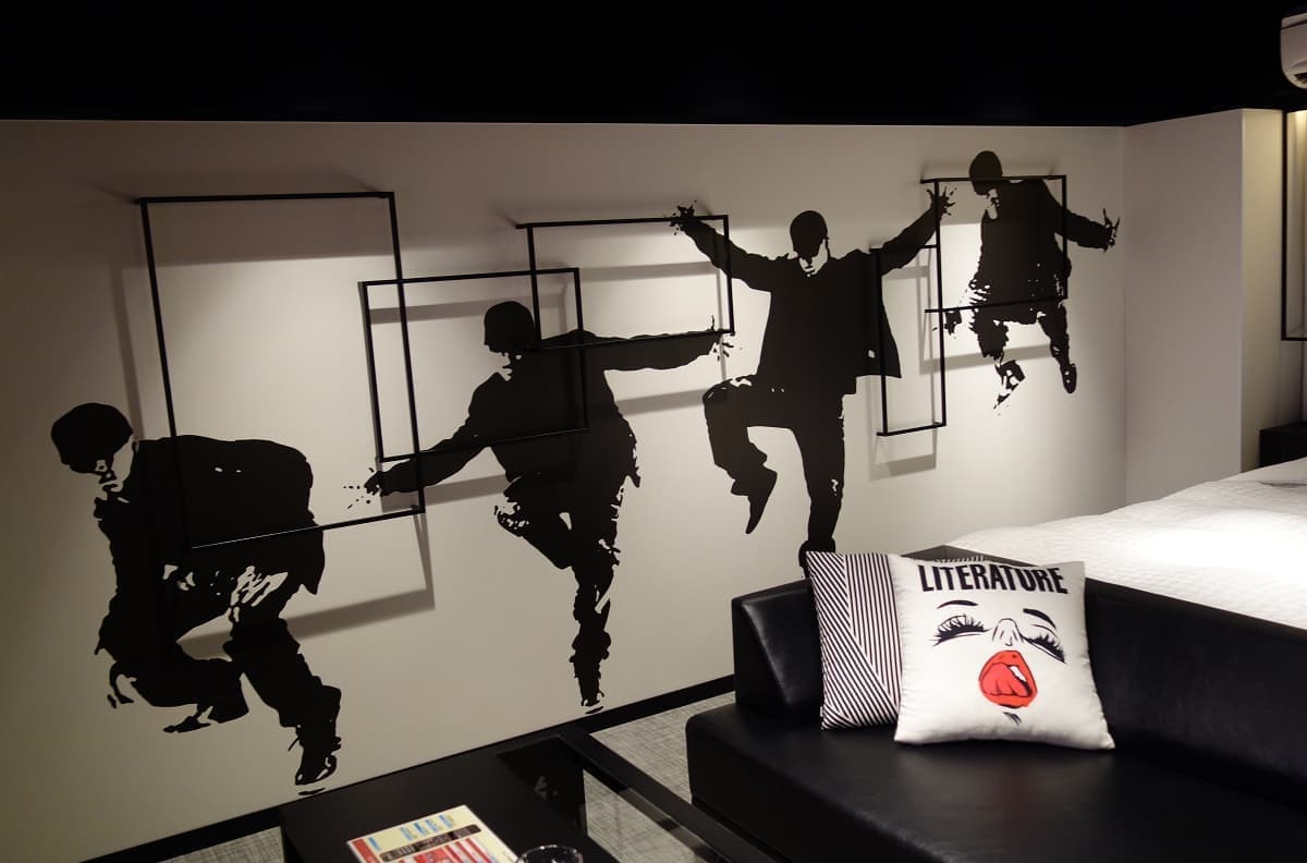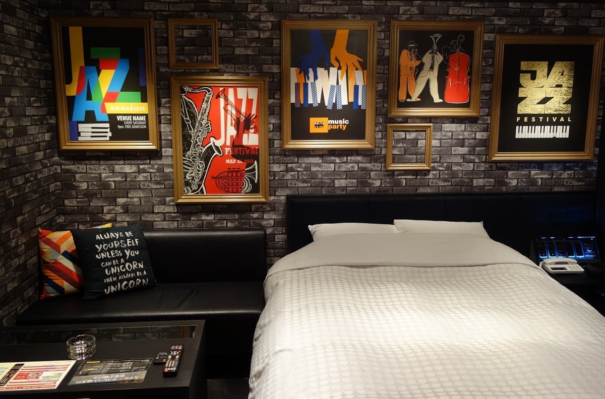 そんなことを思い描きつつ客室フロアへ進むとさらなる文化の香りが。それは“音楽”だ。JAZZにHIPHOP……ライブハウスかジャズバーのような雰囲気に、レジャーホテルにいることを忘れてしまう。これもまた補色的なコンセプトであるが、インデリアデザインの秀逸さで見事に融和している。