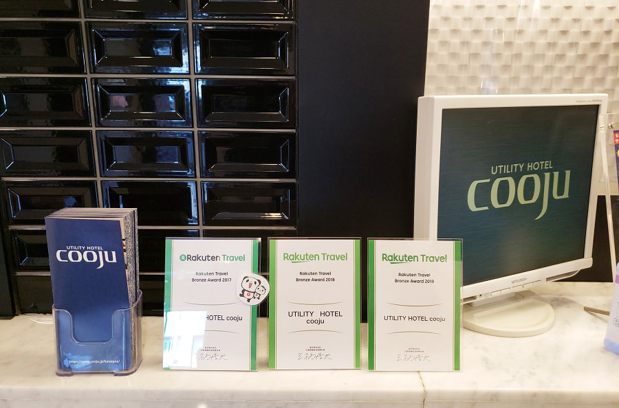そんなフロント周りでは3つの盾が凜とした雰囲気を放つ。楽天トラベルのブロンズアワード2017~2019と3年連続で受賞しているホテルでもあった。