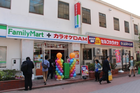 ㈱第一興商と㈱ファミリーマートは、包括提携契約を結び、2014年4月17日、カラオケとコンビニエンスストアを一体化した新業態「ファミリーマート+カラオケDAM蒲田駅前店」をオープンした。