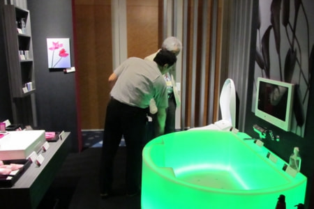 今年で4回めを迎える今回の展示会は、ホテル関連企業33社が出展(共同出展含む)。また、ホテル客室を再現した特設展示コーナー(㈱玄子空間デザイン研究所 代表取締役 玄子邦治氏プロデュース)を別会場に設置。協賛各社の注目商品を取り入れたデザイン空間は注目を集めていた。なお、当日19時から大阪産業創造館16階スカイレストラン バー スターアイルにて懇親会も開催された。