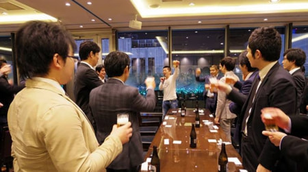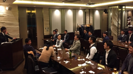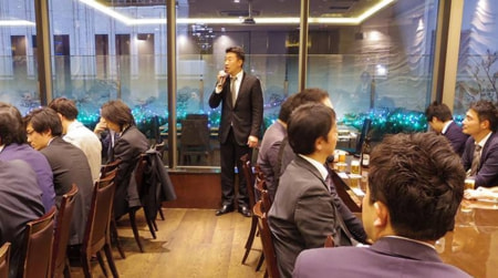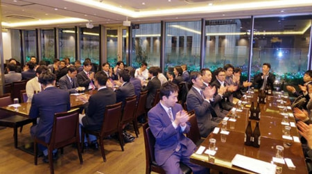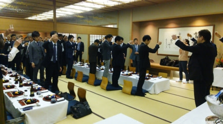 セミナー後に会場を「日本料理 車屋本店」(東京都新宿区)に移し、正会員を対象にした忘年会を開催。約70人が参加。