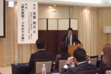 午後4時より、「目黒雅叙園」2階の「華しずか」において、「開運なんでも鑑定団!」鑑定士でもある、「ブリキのおもちゃ博物館」館長の北原照久氏を講師として招き、「夢の実現! ツキの十カ条」と題した講演会を実施。