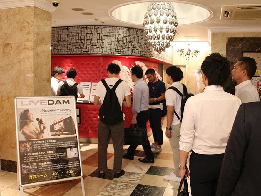内覧会は、午後3時〜5時の2時間、同ホテルの経営体である双芽商事㈱・梁瀬広実氏(日本レジャーホテル協会初代青年部部長)の協力のもとに実施され、終了後は近くの飲食店に場所を移し、懇親会も開催された。