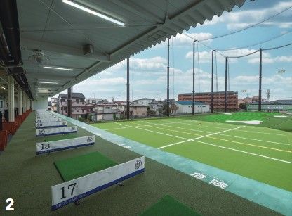 SHOTBASE志木は、全32打席(1階16打席、2階16打席)、最大飛距離120ヤードの規模で、付帯施設としてショップ、工房、室内パッティンググリーンを完備。クラブハウスと打席棟の躯体を残しリニューアルを実施。ポールやネット等は入替え、フィールドも造成からやり直した。