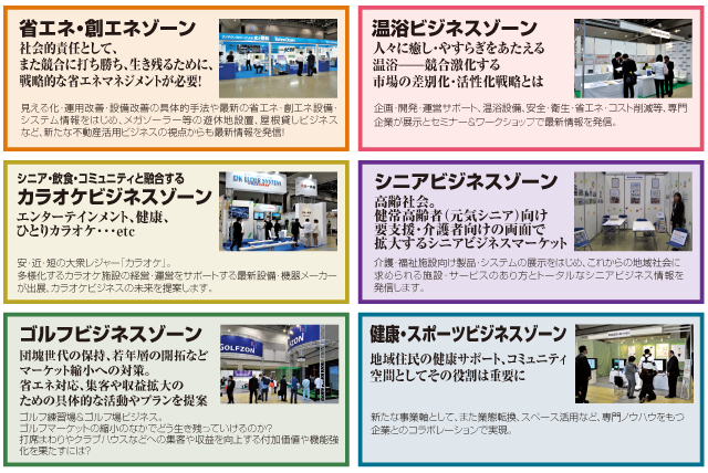 展示会場内は、変化するマーケットの最新ニーズを捉えた各業種別のテーマゾーンと全57講座の無料公開セミナーで構成されています。