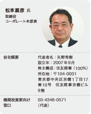 新規テーマのファンド投資にも関心を示す。先述のESG的要素を含むヘルスケアアセットや収益性の底堅い底地の組み入れ、追加取得型ブリッジファンドの立ち上げなどを検討しているとのこと。そのほか、住友商事グループ全体で推進しているDXと連動して業務効率化や人員配置の最適化を図り、会社全体の成長および高品位なAMサービスの提供へつなげたい考えだ。