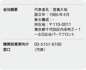 ケネディクスは、約2.3兆円の受託資産残高を有する国内最大級のアセットマネジメント会社。ケネディクス不動産投資顧問(100%子会社)を通じて、私募REITのほか3つのJ-REITの運用を行っている。不動産私募ファンドについては、専業の資産運用会社であるケネディクス・インベストメント・パートナーズ(100%子会社)が運用を行っている。