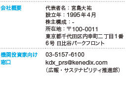 ケネディクスは、2.5兆円を超える受託資産残高を有する国内大手のアセットマネジメント会社。ケネディクス不動産投資顧問(100%子会社)を通じて、私募REIT(ケネディクス・プライベート投資法人)のほか3つのJ-REITの運用を行っている。不動産私募ファンドについては、専業の資産運用会社であるケネディクス・インベストメント・パートナーズ(100%子会社)が運用を行っている。
