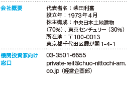 中央日本土地建物グループの資産運用事業を担う中央日土地アセットマネジメント。同社の強みは、①デベロッパーであるスポンサールートを通じた物件供給やCRE関連の優位的な物件情報力、②多様な投資家との接点、③国内外の金融機関との取引実績、④社外取締役や外部委員も加わったガバナンス態勢、④グループ総合力を活かした多彩なファンドの企画・運用を行っている。